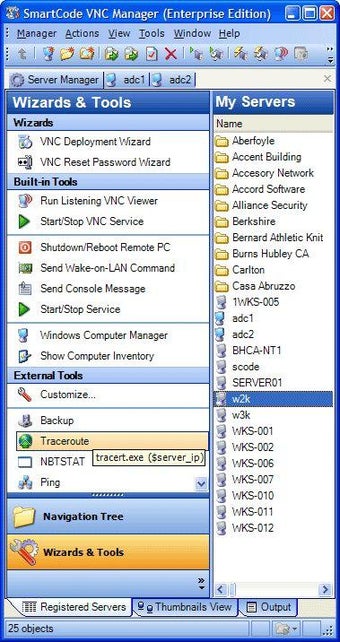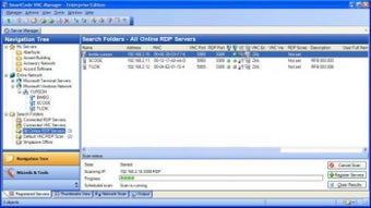 Usando SmartCode VNC Manager, podrás controlar a la vez servidores VNC y RDP, desde una interfaz bien estructurada e intuitiva, sin necesidad de usar siquiera un visualizador VNC externo. Brinda soporta para las últimas distribuciones de VNC y ofrece diferentes modos de visionado de las maquinas, como listado, iconos o mediante una galería de miniatura de los escritorios remotos.